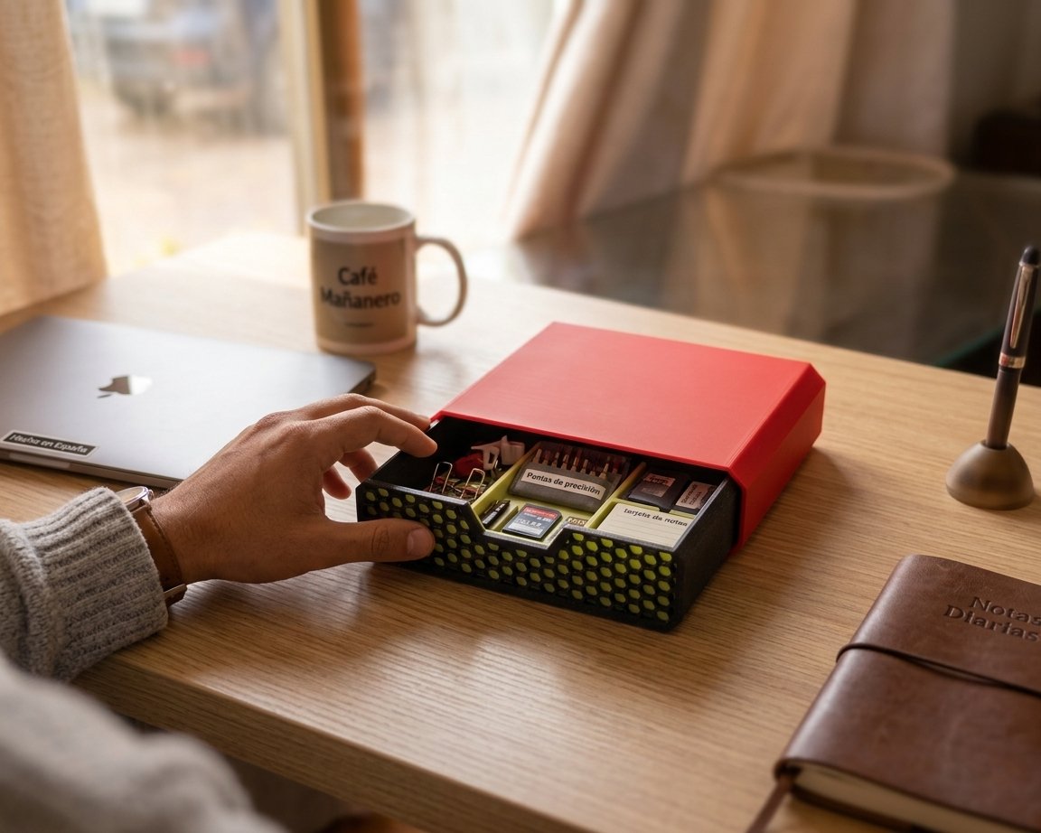 Esta cajonera es perfecta para mantener organizados tus objetos personales y de trabajo. Con un diseño minimalista y elegante, se adapta a cualquier decoración de oficina o hogar. Puedes personalizarla según tus necesidades y preferencias.